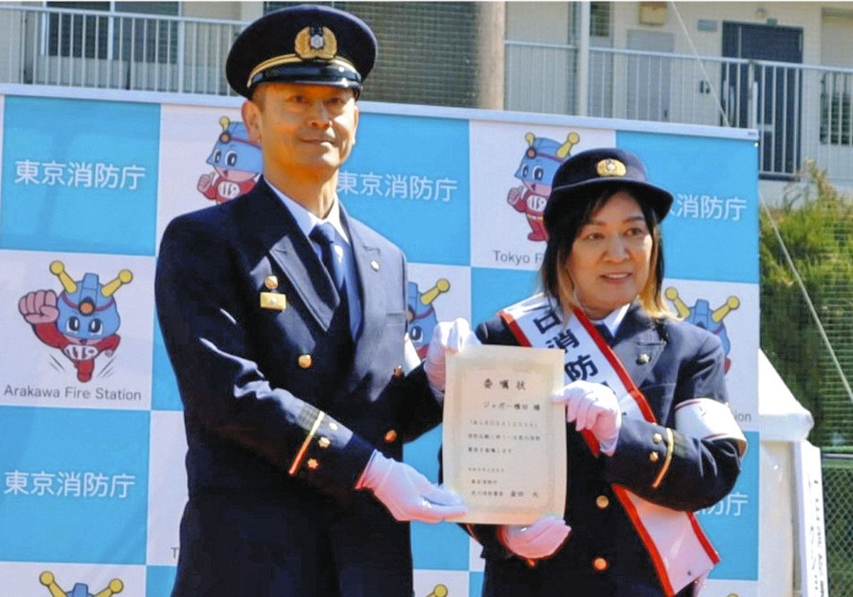 ジャガー横田さん 火災予防呼びかけ 荒川で一日消防署長