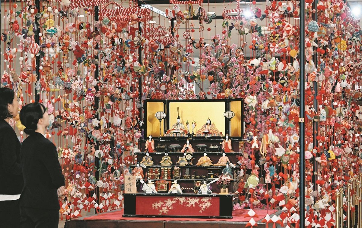 ひな祭りの3日、東京都新宿区の京王プラザホテルでは、縁起物の人形など約5000個が使われた「つるし飾り」や、伝統的な木目込み人形「真多...